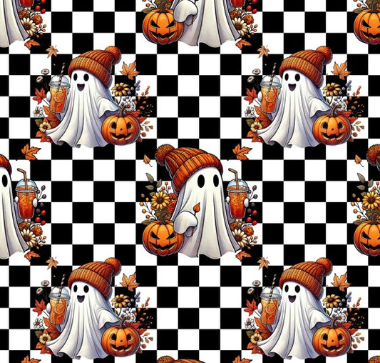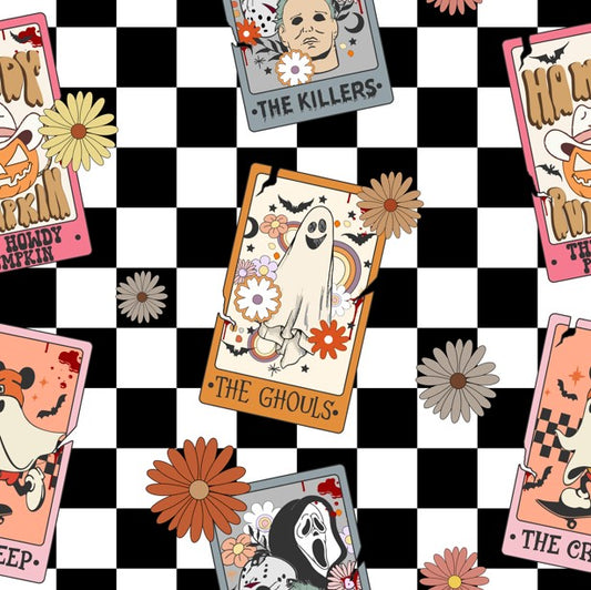 Made to Order Chilling Halloween Checkered Floral Ghost Bullet, DBP, Rib Knit + other fabrics
