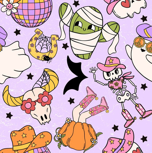 Made to Order Ghouls Just Wanna Have Fun Pink Halloween Pumpkins Bullet, DBP, Rib Knit + other fabrics