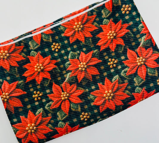 Green Gingham Faux 3D Poinsetta Christmas Floral Bullet, DBP, Rib Knit + other fabrics