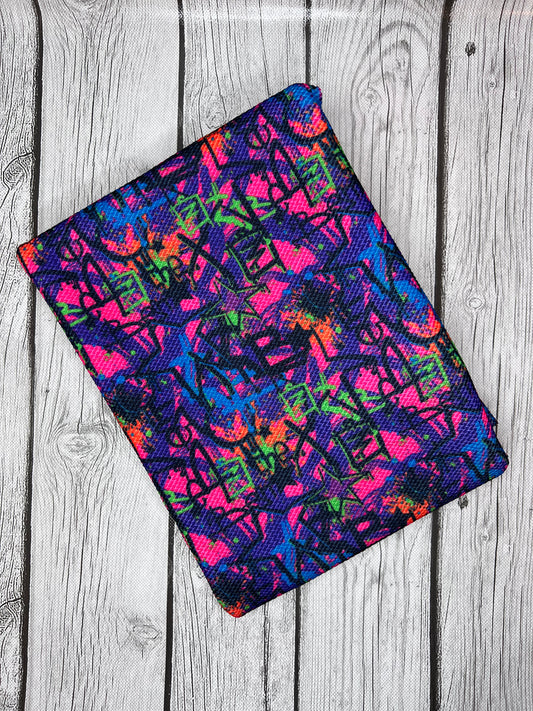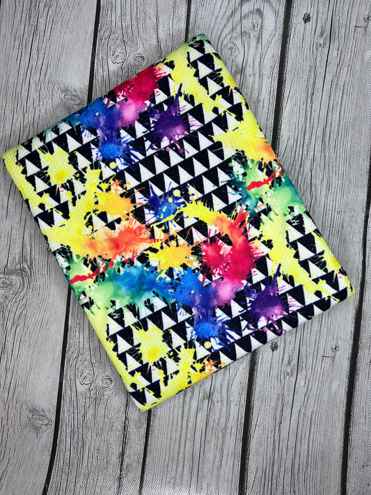 Ready to Ship Bullet knit fabric 90s Graffiti Shapes Paint Splat makes great bows, head wraps, bummies, and more.