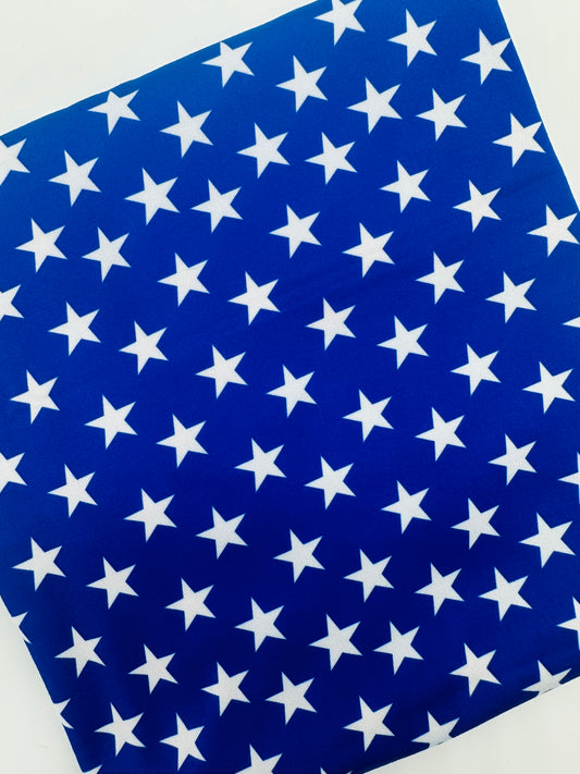 Fourth of July Blue Stars Bullet, DBP, Rib Knit, Velvet, Cotton Like Knits + other fabrics