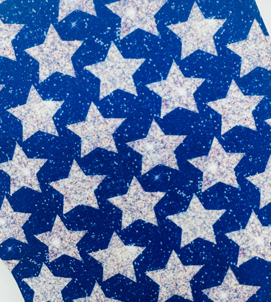 Fourth of July Faux Glitter Blue Stars Bullet, DBP, Rib Knit, Velvet, Cotton Like Knits + other fabrics