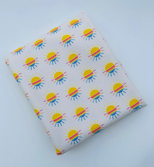 Ready to Ship Bullet fabric Rainbow Sunshine Seasons makes great bows, head wraps, bummies, and more.