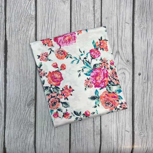 Ready to Ship DBP Thin Lightweight White Pink Orange Floral makes great bows, head wraps, bummies, and more.