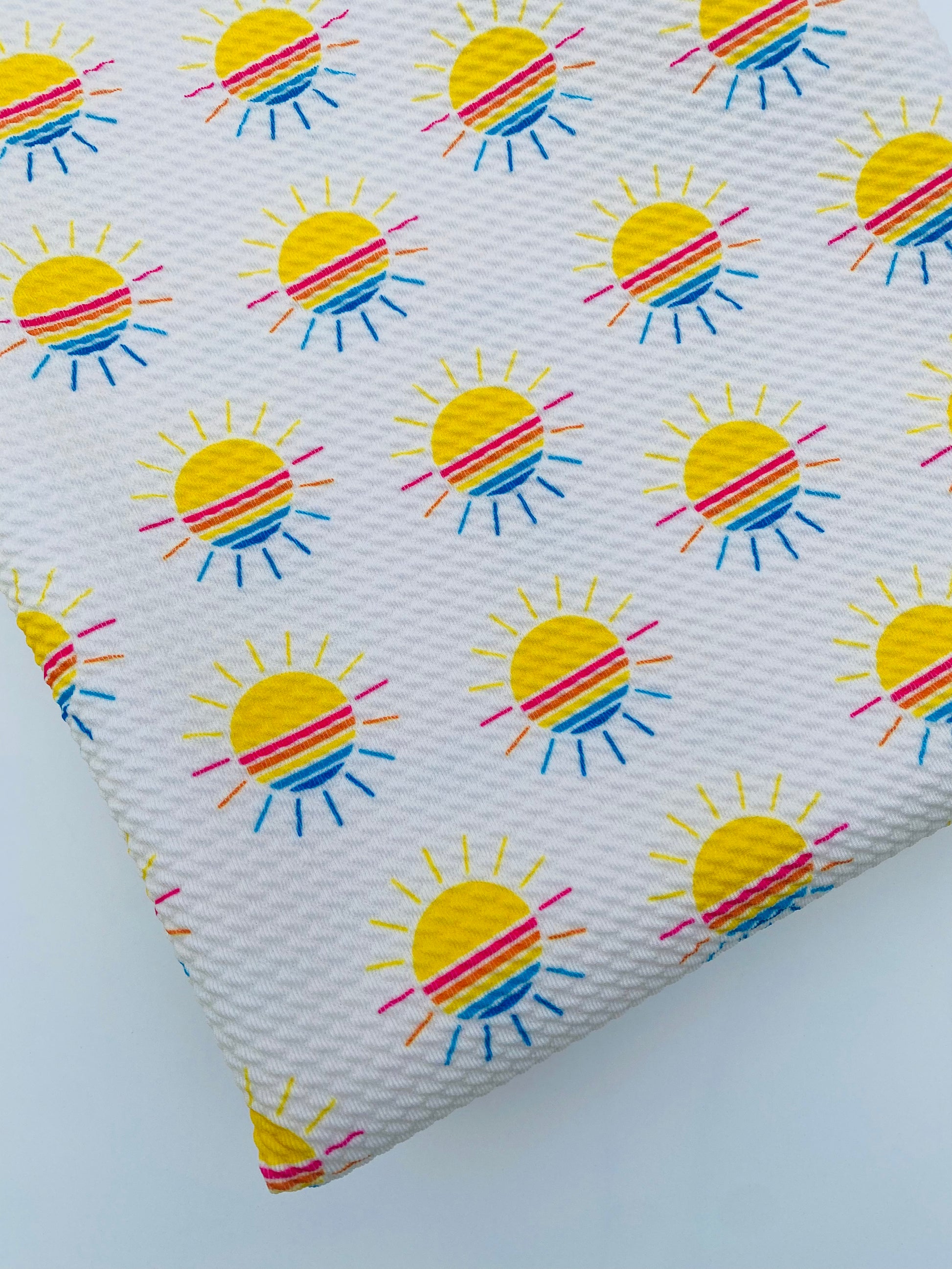 Ready to Ship Bullet fabric Rainbow Sunshine Seasons makes great bows, head wraps, bummies, and more.