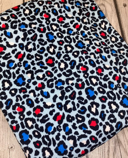 Light Blue Fourth of July Cheetah Animals Bullet, DBP, Rib Knit, Velvet, Cotton Like Knits + other fabrics