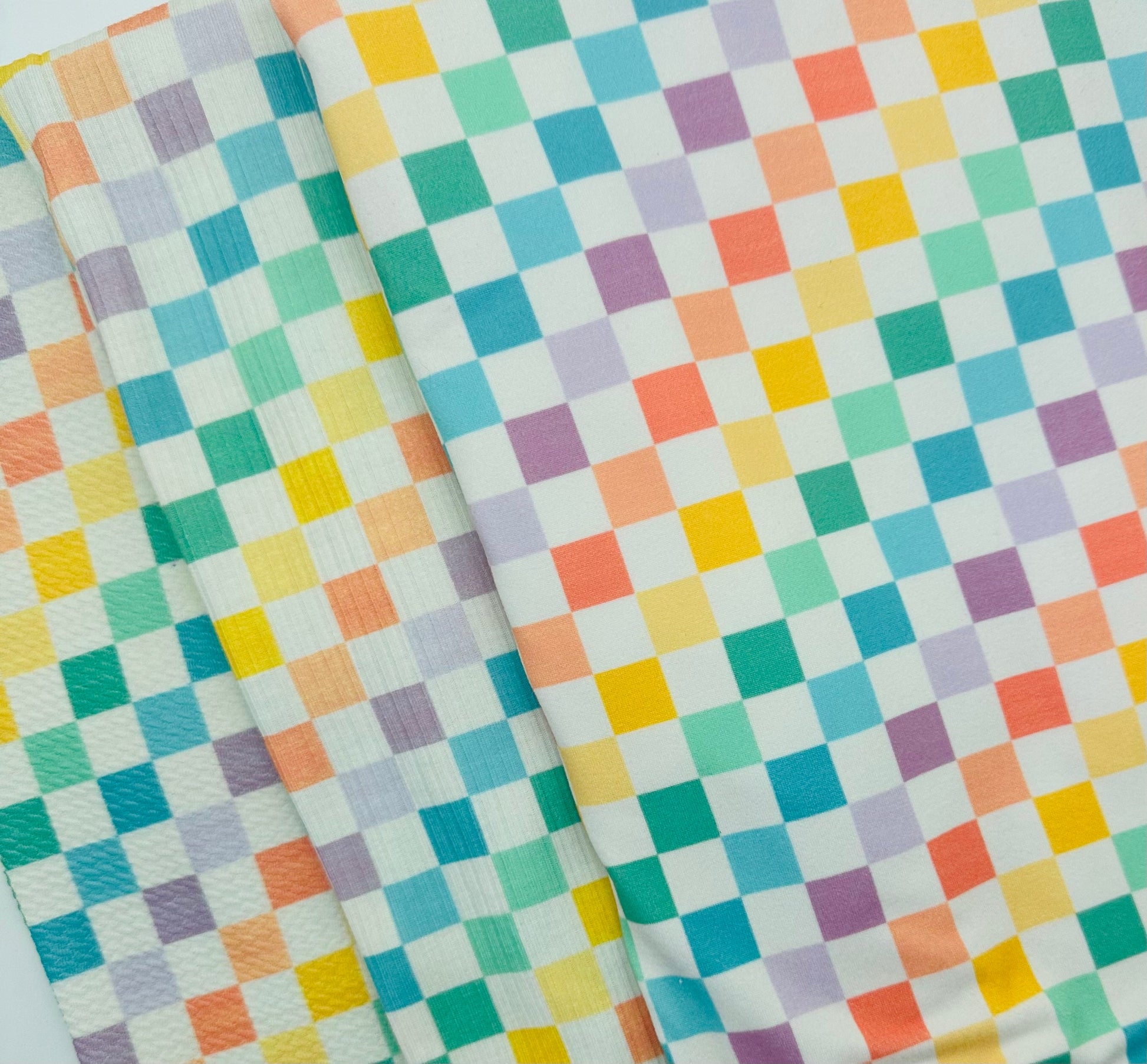 Rainbow Summer Checkered Plaid Bullet, DBP, Rib Knit, Velvet, Cotton Like Knits + other fabrics
