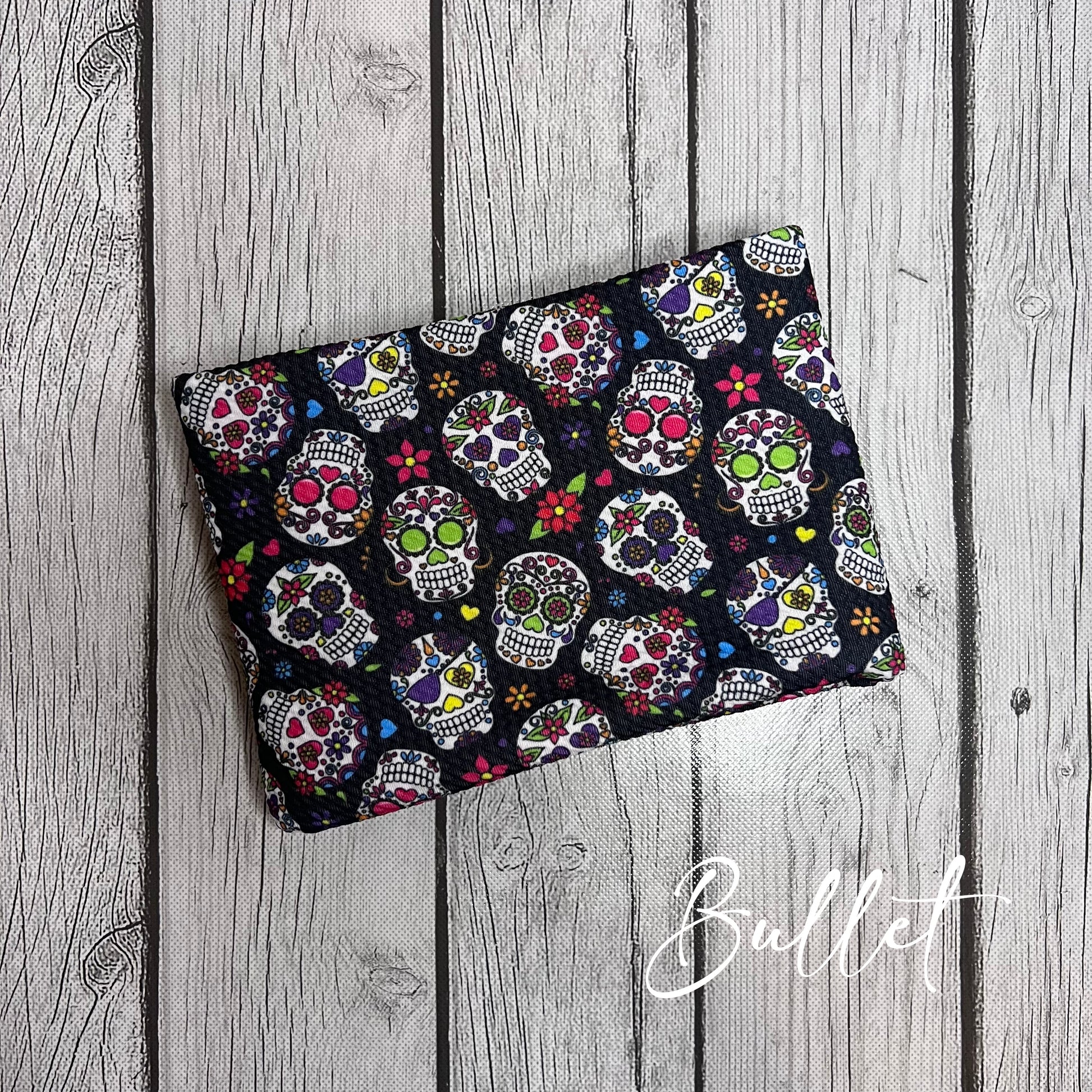 Ready to Ship Bullet fabric Halloween Sugar Skulls makes great bows, head wraps, bummies, and more.